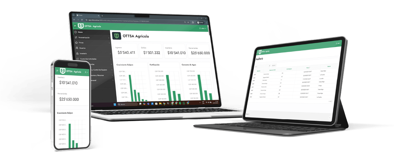 Todo en una sola plataforma, sin complicaciones, con una estructura flexible que se adapta a tu modelo de negocio y al tipo de cultivo que manejes.